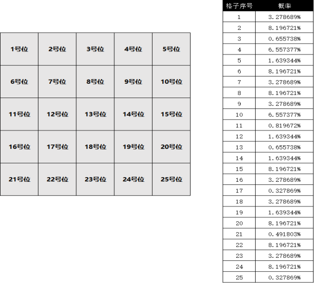 1、玲珑之弈各格子位的概率展示如上